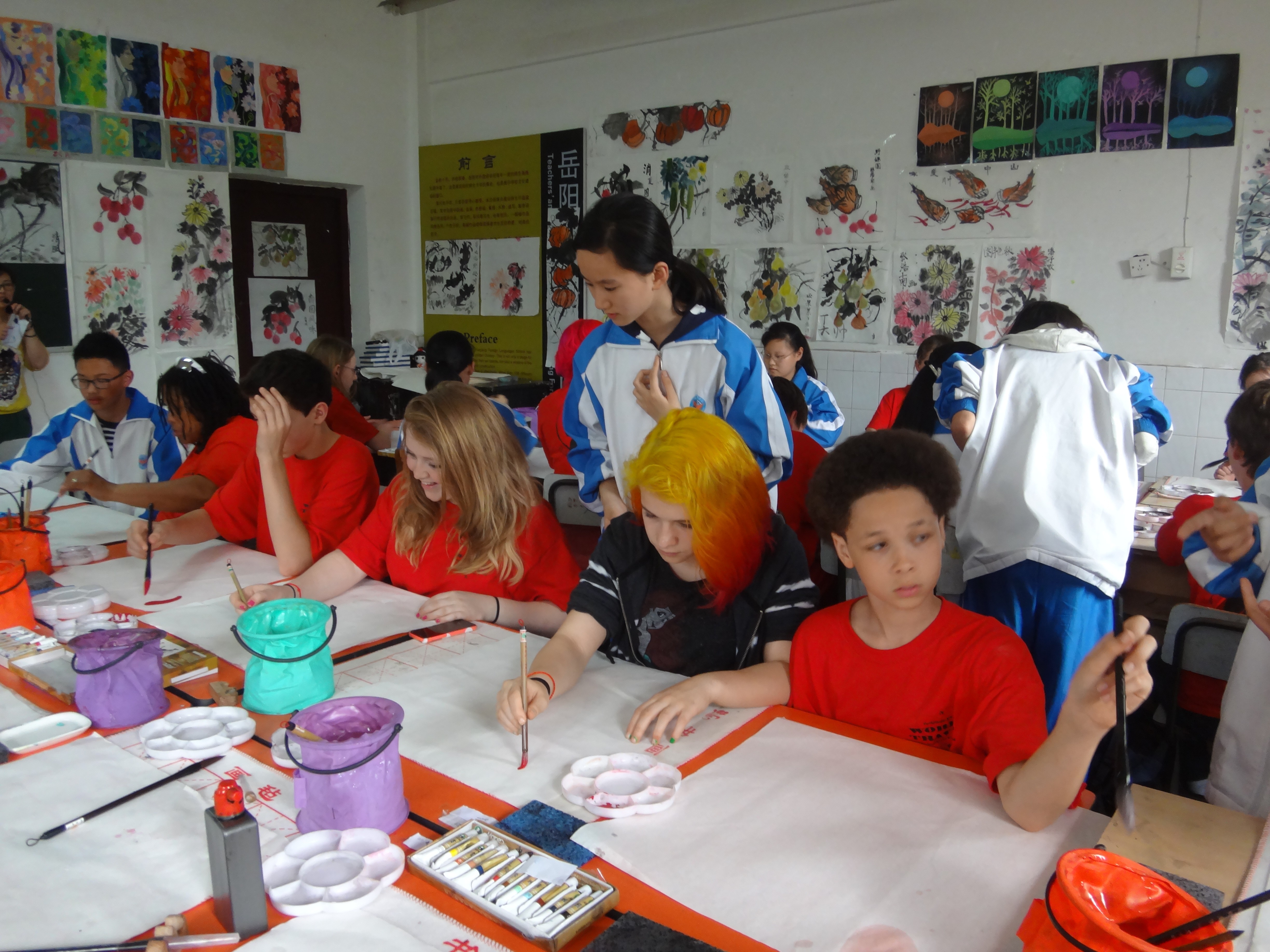 在两天的交流活动中,中美两国师生结成对子,深入课堂,深入家庭,开展友好交流活动,全面感受中国学生的学习和生活状态。学校安排的访问交流内容有体验中国武术、国画、书法,师生篮球友谊赛,参观岳阳博物馆及风土民情等,活动安排丰富多彩,精彩纷呈。不同肤色、不同国家、不同民族的学生在彼此的交流中,体验到了不同文化的魅力。