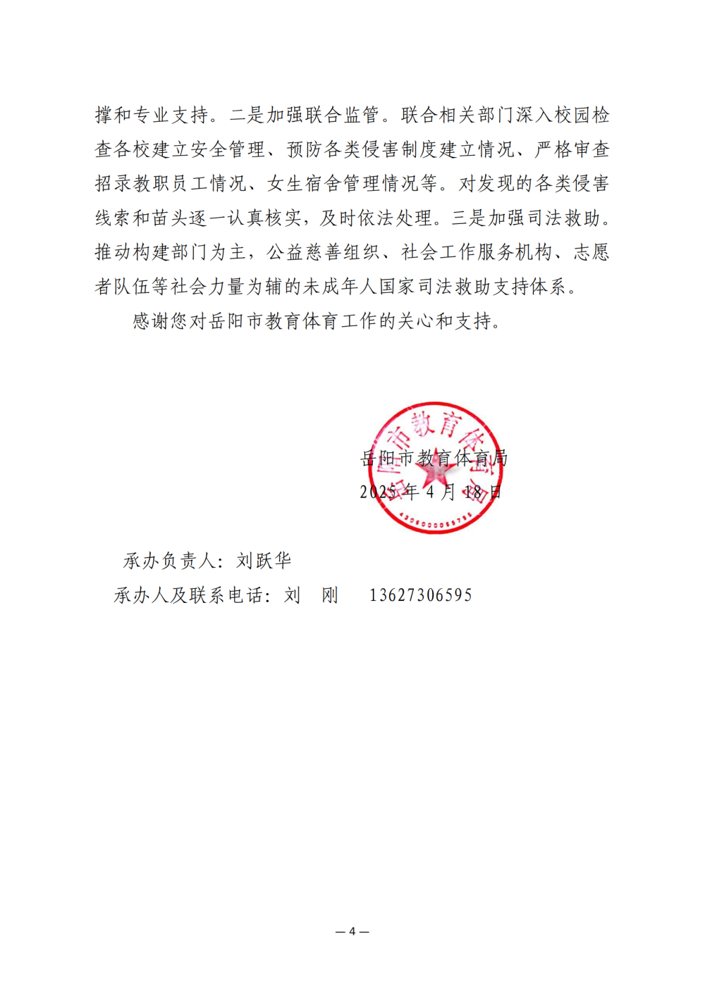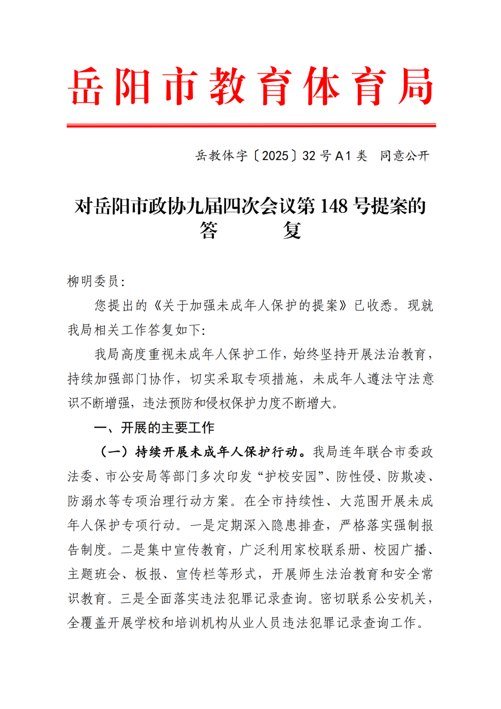 岳教体字〔2025〕32号对岳阳市政协九届四次会议第148号提案的答复