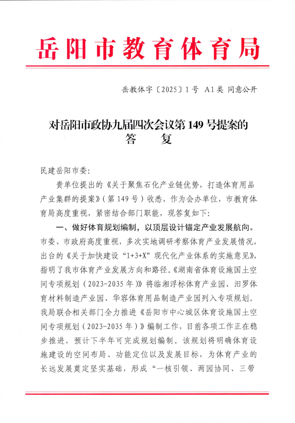 岳教体字〔2025〕1号对岳阳市政协九届四次会议第149号提案的答复