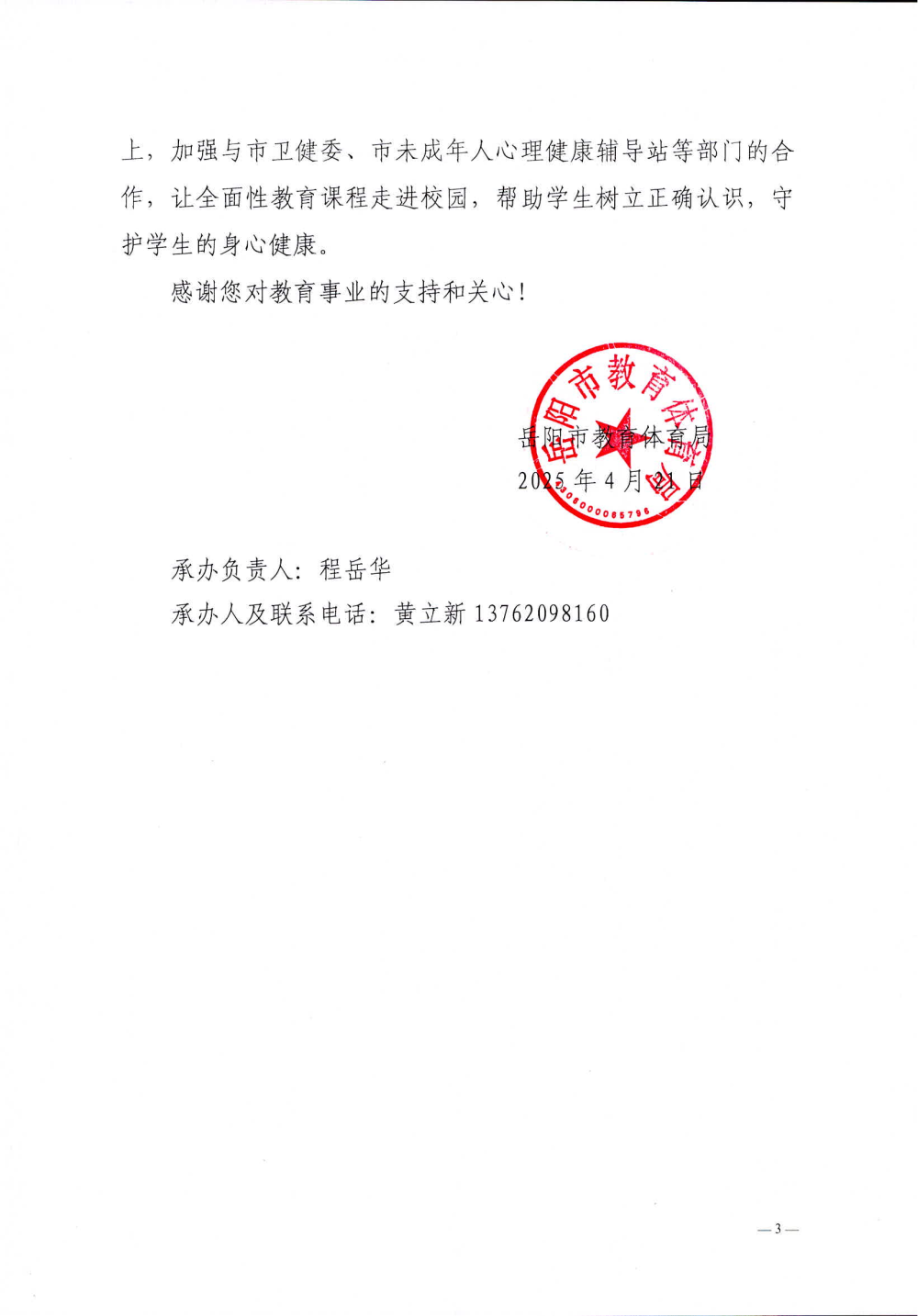 岳教体字〔2025〕18号对岳阳市政协九届四次会议第256号提案的答复