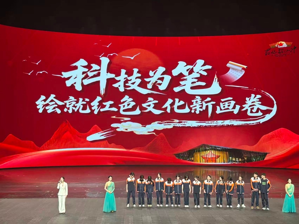 红五星剧场内,一场用诗词、歌曲描绘伟人成长及革命历程的情景剧——《最忆韶山冲》让学生们大饱眼福,深刻感悟革命的艰辛。演出后,学生们还参与了《科技为笔,绘就红色文化新画卷》揭秘课程,亲身体验文化科技的深度融合,感受“红色+科技”如何让历史“活”起来、“潮”起来。