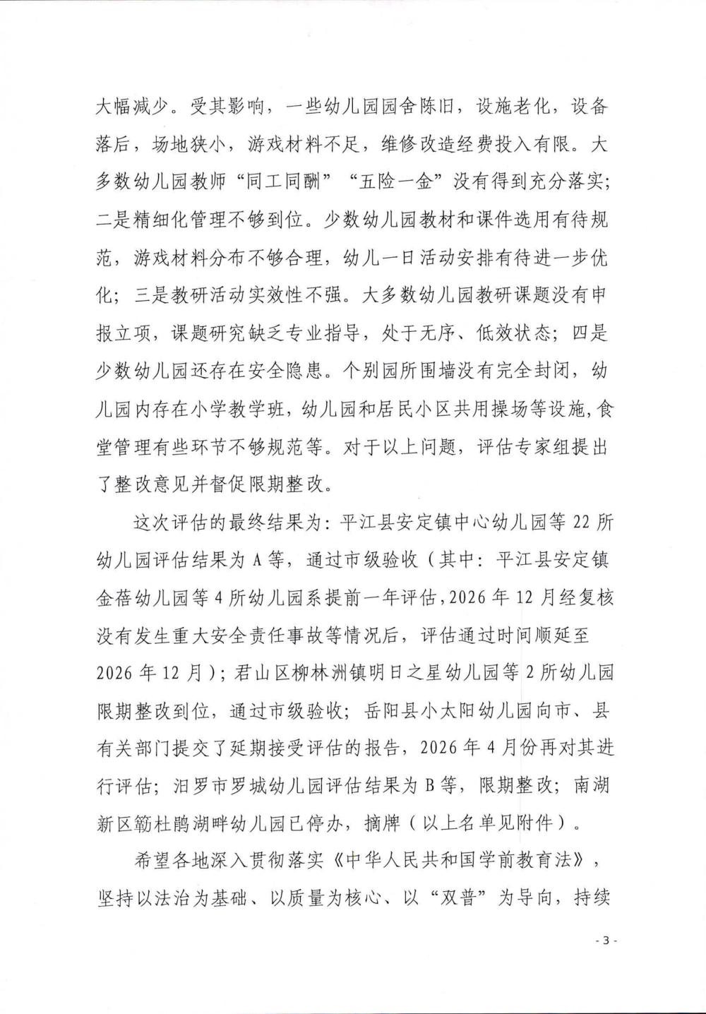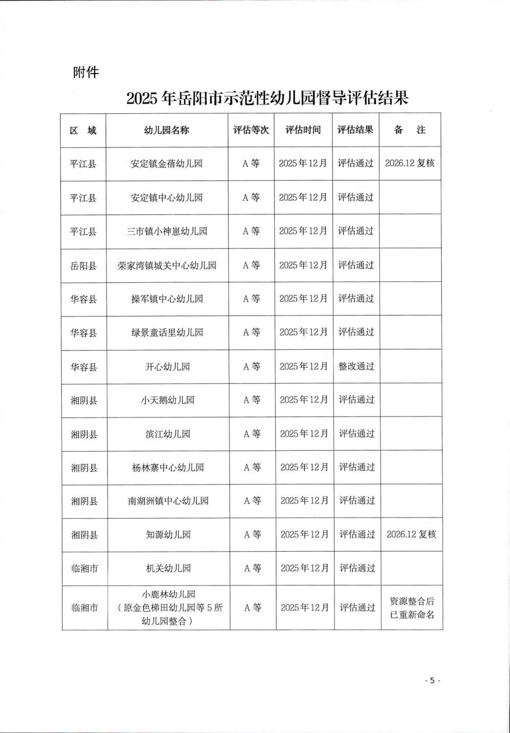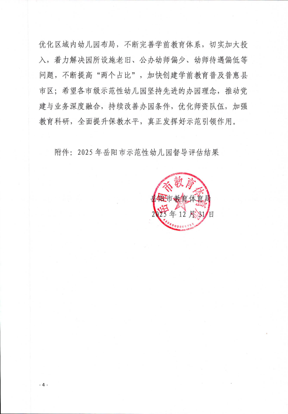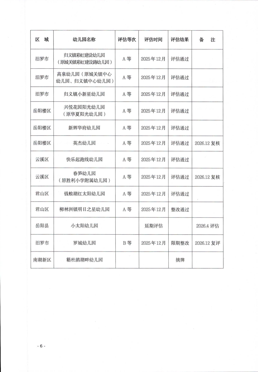 关于2025年度岳阳市示范性幼儿园督导评估情况的通报(岳教体通〔2025〕79号)