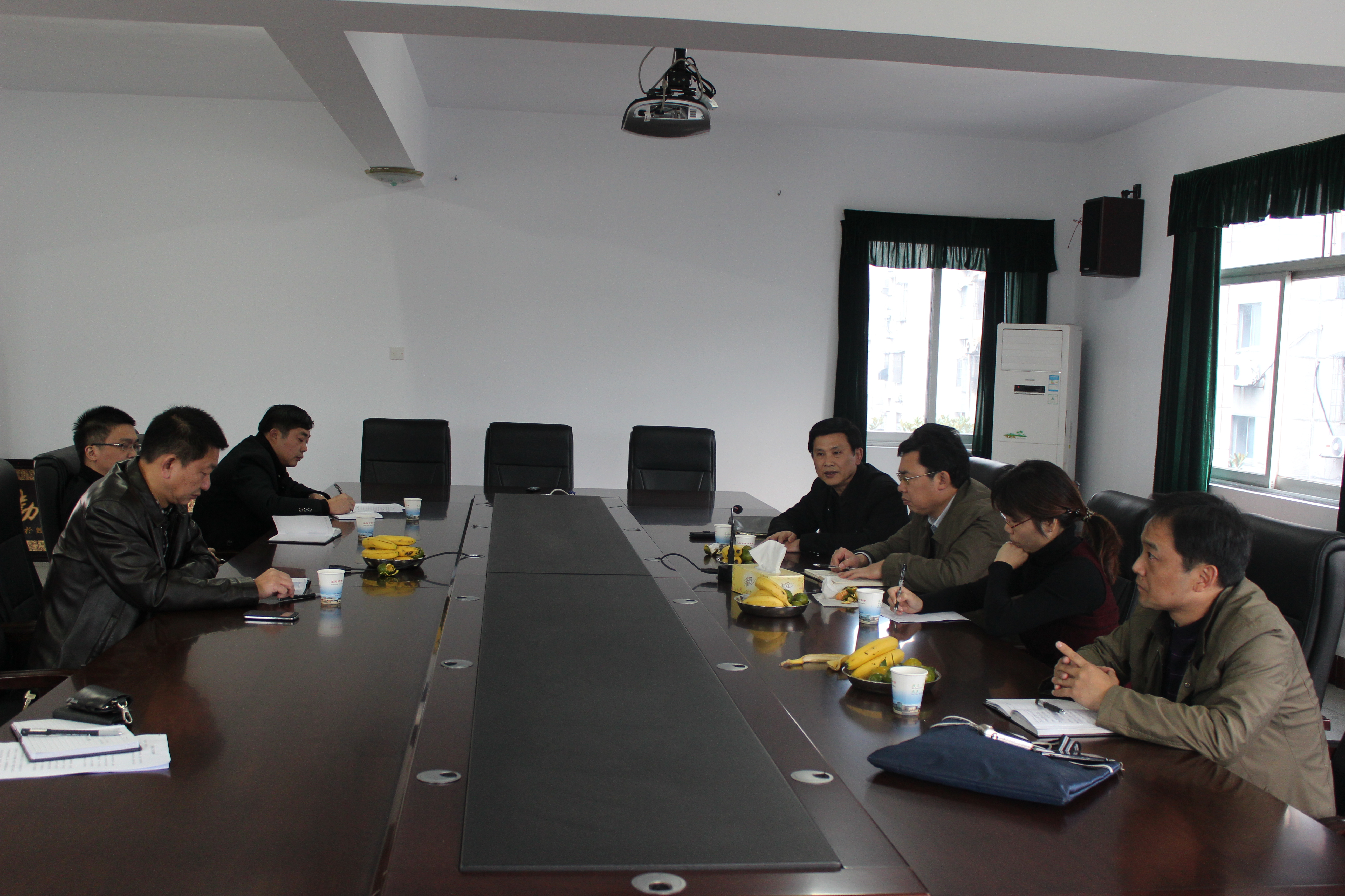 (右排从前至后)市国际教育交流服务中心副主任张斌、湖南理工学院国际交流处处长陈钰、湖南理工学院副院长卢先明、市国际教育交流服务中心主任万志勇。