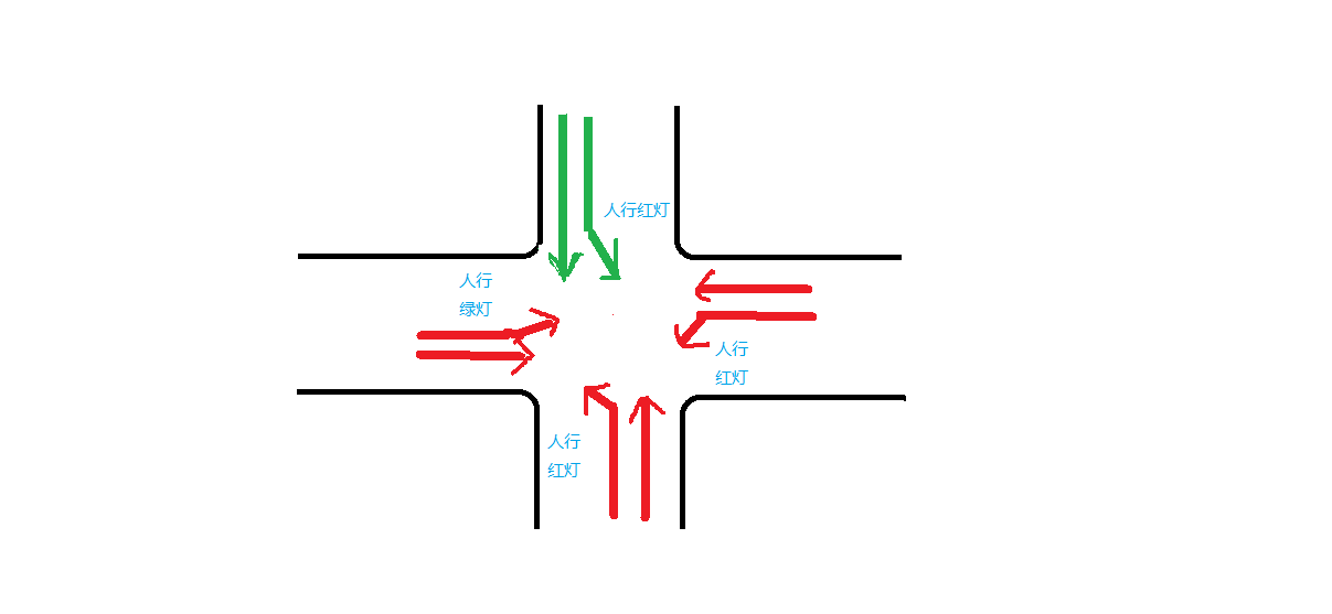 2、对于人行道绿灯,当一个路口车流放行时,其路口右侧的人行道绿灯量,同样与现在一样分为4组,并不会对于增加时间,与现阶段一样,与右拐车量有冲突,但并不增加冲突,对于同时过2次马路人却有些许影响,但是,对于守规则人群同样会遵守,不守规则人群同样乱闯马路。