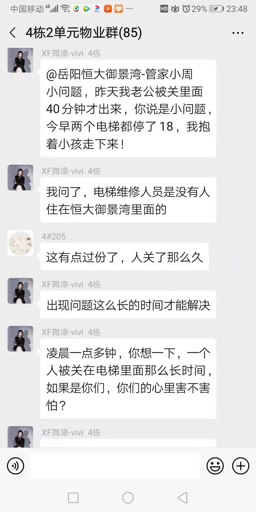 | 标题: | 恒大御景湾4栋电梯险闹人命,物业人员致业主安危不顾脱离岗位! |