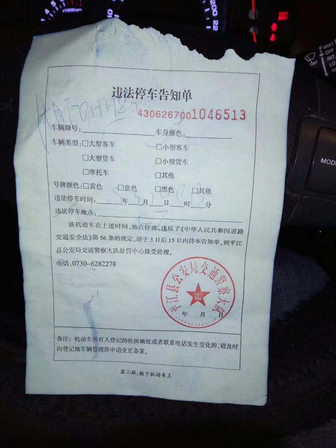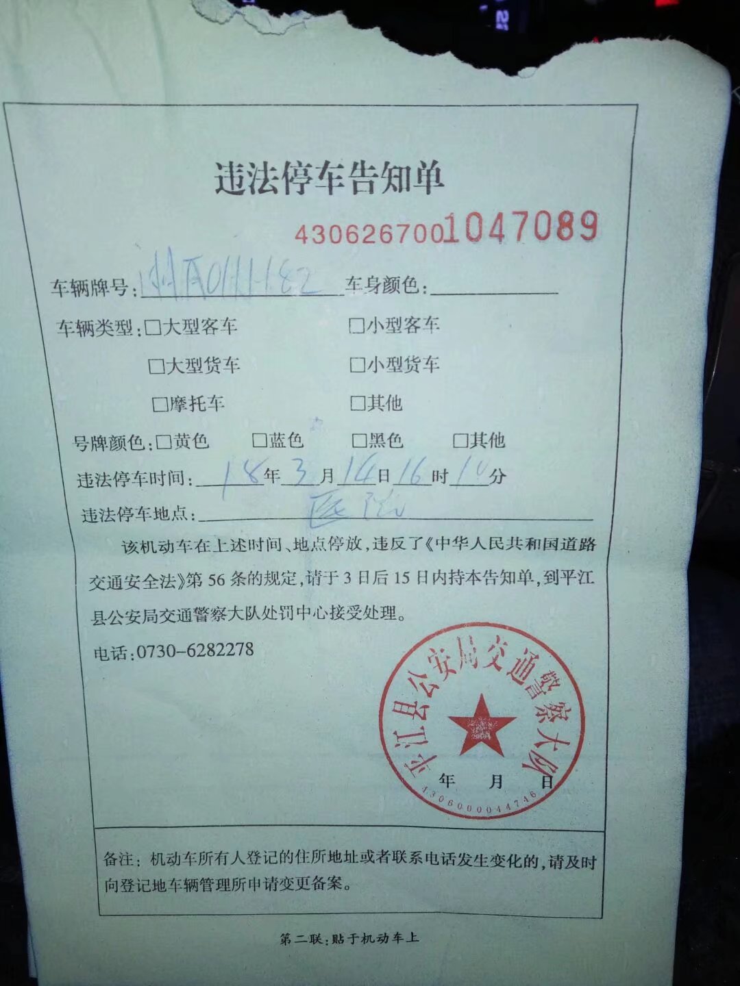 标题: 平江县交警大队违法停车告知单乱开的问题