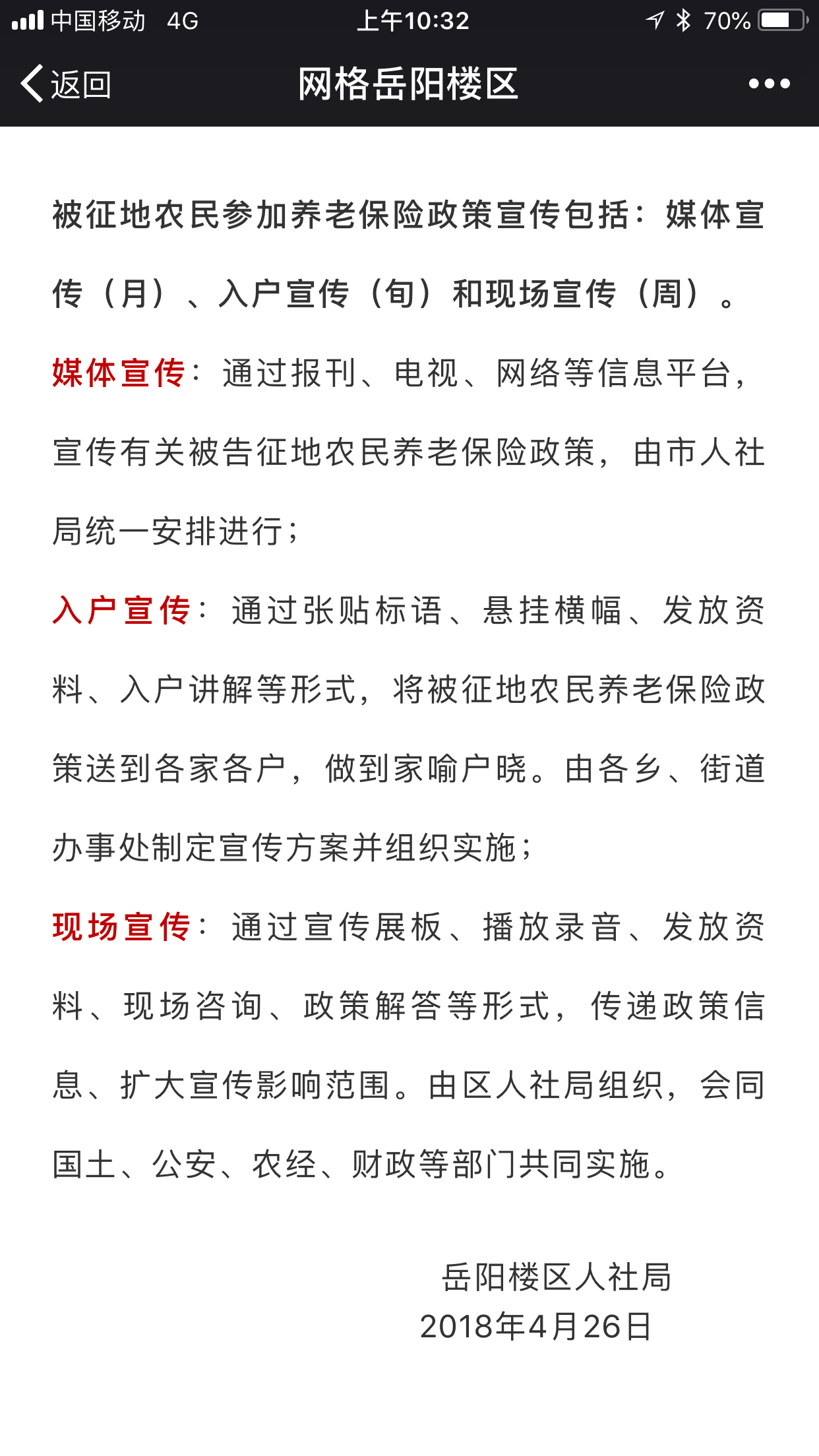 市人社局、经济开发区人社局领导:我市自2016年起制定了《中心城区被征地农民社会保障工作实施意见》,2007年7月以来因政府统一征收农村集体土地而导致失去全部或大部分土地且在征地时享有农村集体土地承包权的年满16周岁的在册农业人口。现岳阳楼区在实施这项政策,我咨询经开区什么时候实施此政策,因本人岳父岳母是经济开发区监申桥村被征地农民,现年岁已高,无劳动能力,无生活来源,希望能早日享受此项惠民政策来安享晚年,迫切咨询经开区此政策情况!