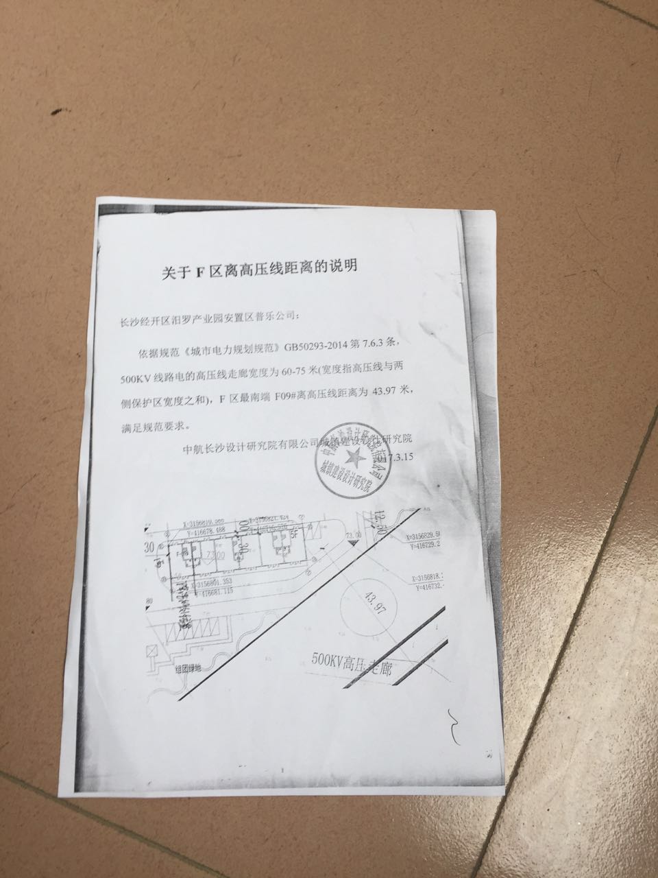 一、安置房距50万伏高压线太近的问题:飞地园安置房建设严格按汨罗市规划部门规划和中航设计院设计的图纸进行建设的,无任何违规现象。您所处的F09栋位置,安全距离符合设计要求(中航设计院出示了依据)。
