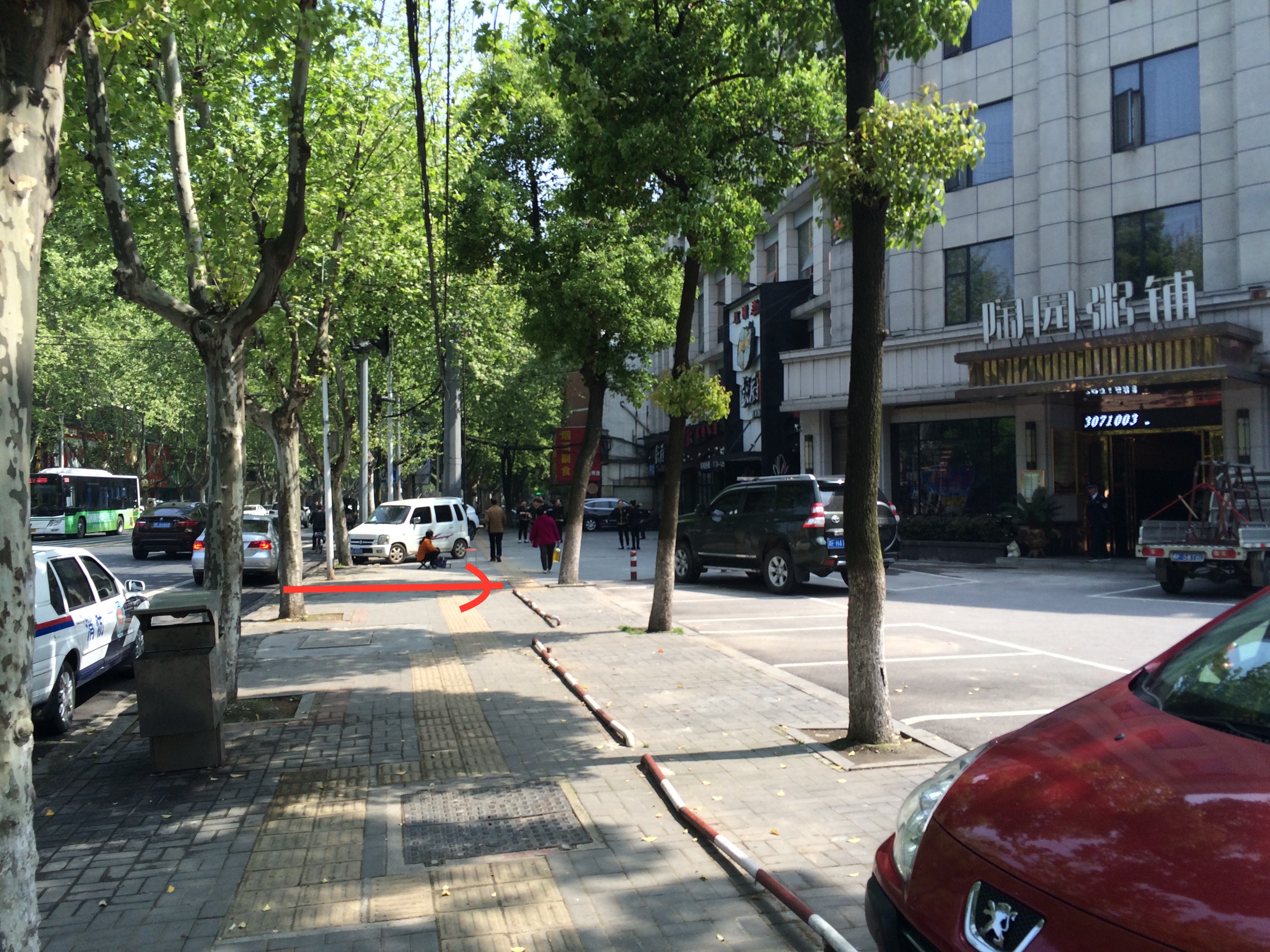 经调查走访“彭厨”业主何先生后,其反映每天用餐高峰期,确有部分就餐顾客或其他车主将车辆停放在人行道甚至盲道上,造成交通堵塞,在现场负责规范车辆停放的保安对其行为束手无策。经协商,其同意采取积极措施改善门前停车秩序:一是暂在“彭厨”门前人行道边缘停放一辆车,以阻止其他车辆从机动车道违规驶上人行道;二是在人行道边缘设置三根固定隔离桩,仅留一个正规车辆出入口,以加强现场停车秩序管理力度,杜绝车辆乱停放现象。