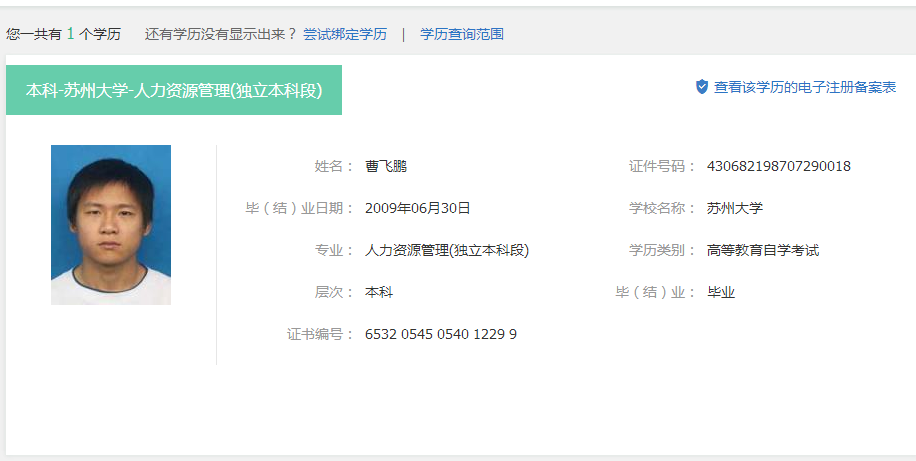 本人2005年临湘一中高中毕业,2009年于苏州大学人力资源管理专业毕业(成人自考),同年到岳阳市邮储银行参加工作至今,学信网查看的截图请看附件。按照22号文件复审的要求,非全日制的要提供之前的学历证书,但是我目前高中证书已经遗失了,请问在这种情况下我可以报考中级经济师么?考试通过后复审能通过么?