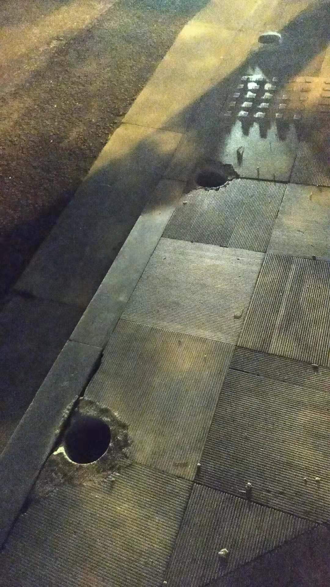 岳阳城区原本设置隔离路障(看图),防止车辆乱停人行道,最近发现有些地方的隔离桩无端废掉,是出于什么原因呢?明明是好的,也不需要更新。有些人行道被挖的坑坑洼洼,说是安装智能信号灯,可这样的复原工程是不是太马虎了(看图)。豆腐渣一样,市政维护的钱也是纳税人的钱吧,这纳税人的钱不是大风刮来的,这样花钱可不好!!