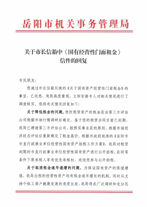 标题: 关于国资经营性门面租金