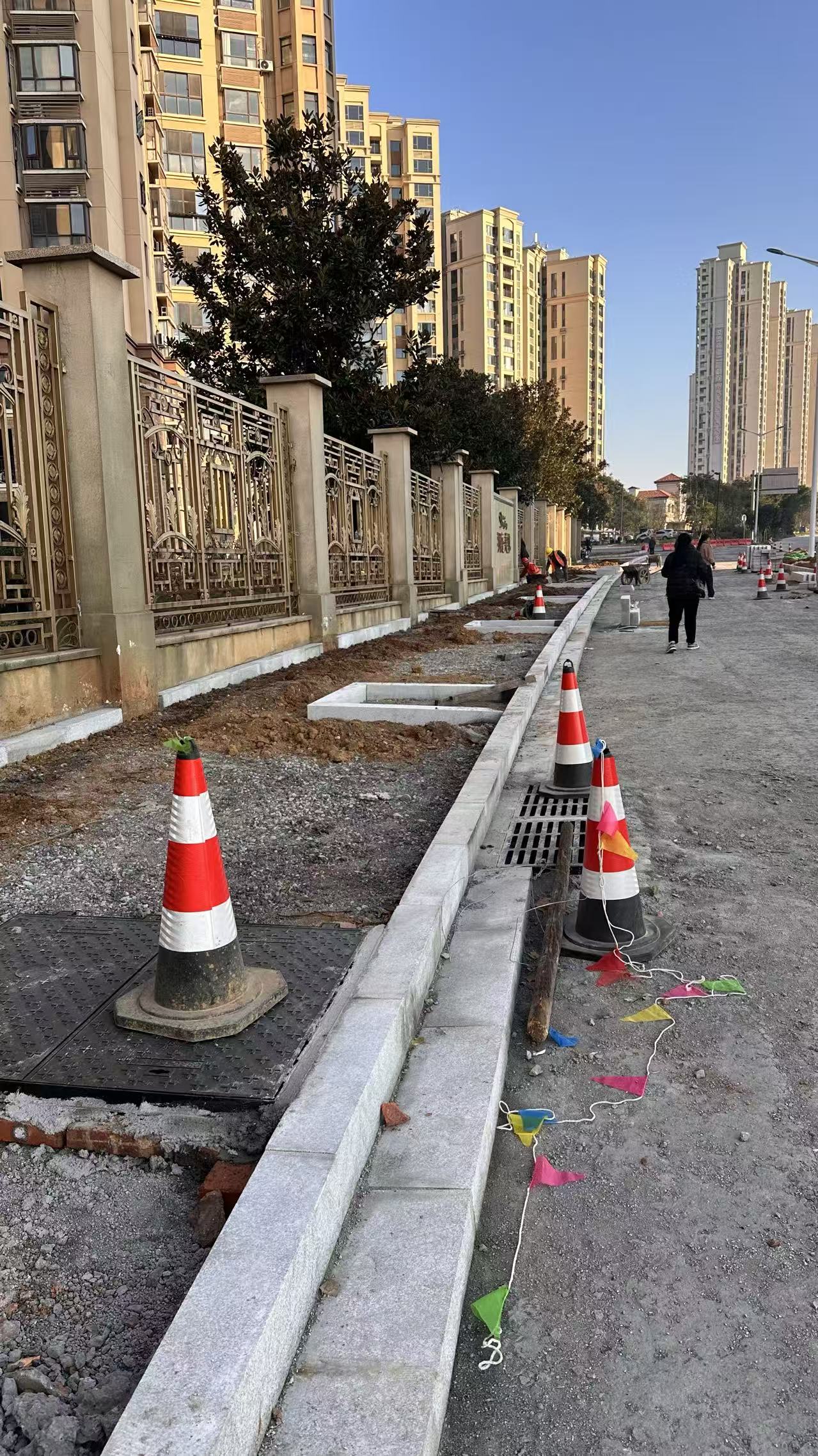 洞庭美域外道路拓宽,本来就是利国利民的好事,目前施工正在进行,看到靠近洞庭美域围墙外的人行道,道路本有限,人行就靠近围墙外侧有限范围了,看到砌了石块象是准备栽树预留的,建议此人行道不用再栽树。种上树,人行道基本是废了。可能道路有标准,规则要有树,但特殊情况特殊处理,以人为本,留下人行道路让人行人走路。此人行道人流量还是挺多,11路公交站下车人员,往前面各小面都要经过,半岛居民来天天世纪等消费也是必走之路,如果栽了树,剩下走路空间很小,一般都会往辅道上走,推测辅道上的车量还是挺多的,荣家湾公交车走辅道,右转去小区机动车、非机动车都会走辅道,这样形成人车不分流,容易造成碰擦事故。